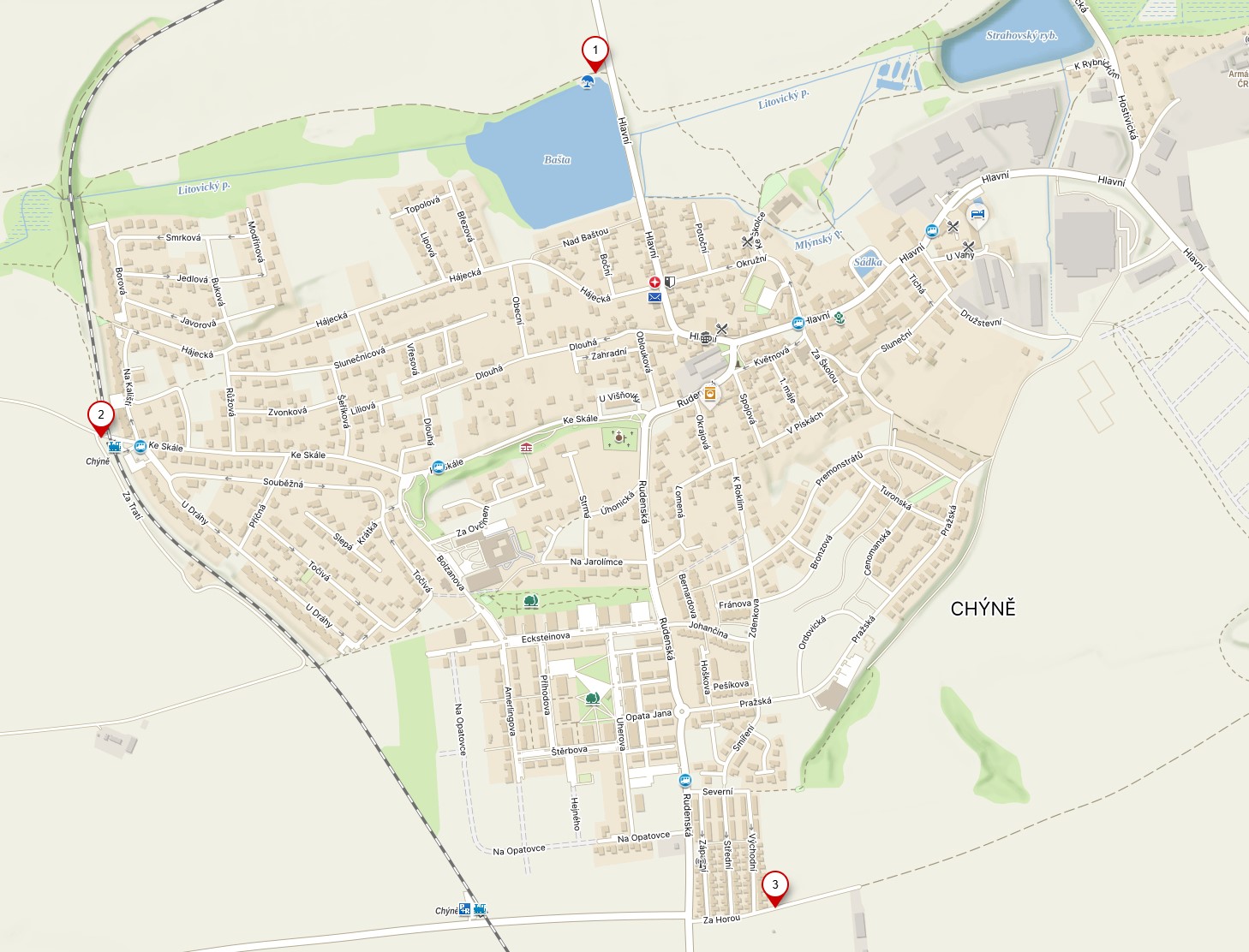 - v ulici Za Horou (směr Dušníky) (viz mapka níže).